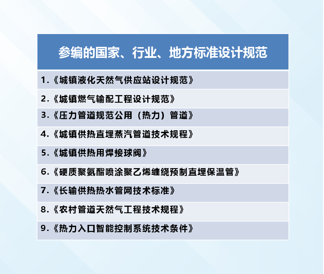 我公司參與編制了國家標(biāo)準(zhǔn)《城鎮(zhèn)液化天然氣供應(yīng)站設(shè)計(jì)規(guī)范》、《城鎮(zhèn)燃?xì)廨斉涔こ淘O(shè)計(jì)規(guī)范》、《壓力管道規(guī)范 公用管道(熱力)》、《城鎮(zhèn)供熱直埋蒸汽管道技術(shù)規(guī)程》、《城鎮(zhèn)供熱用焊接球閥》、《硬質(zhì)聚氨酯噴涂聚乙烯纏繞預(yù)制直埋保溫管》工作。其中為《壓力管道規(guī)范 公用管道(熱力)》編制起到主要作用。