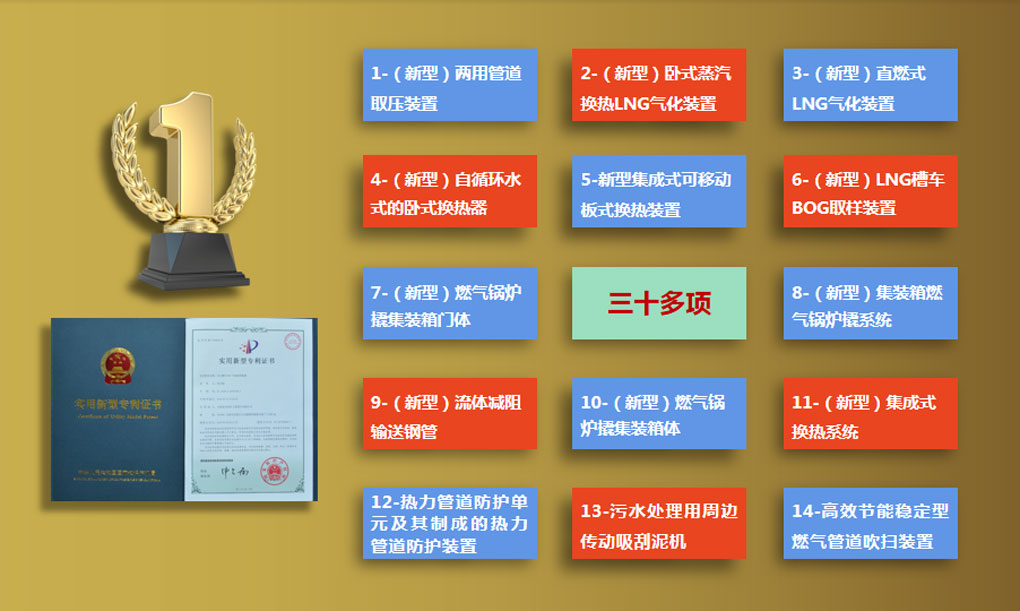 公司技術(shù)骨干編寫的專利,已申請(qǐng)并獲批了“兩用管道取壓裝置”(專利號(hào)ZL 2018 2 0240323.1)、“臥式蒸汽換熱LNG氣化裝置”(專利號(hào)ZL 2018 2 0226469.0),“直燃式LNG氣化裝置”等三十多項(xiàng)發(fā)明型和實(shí)用型專利。